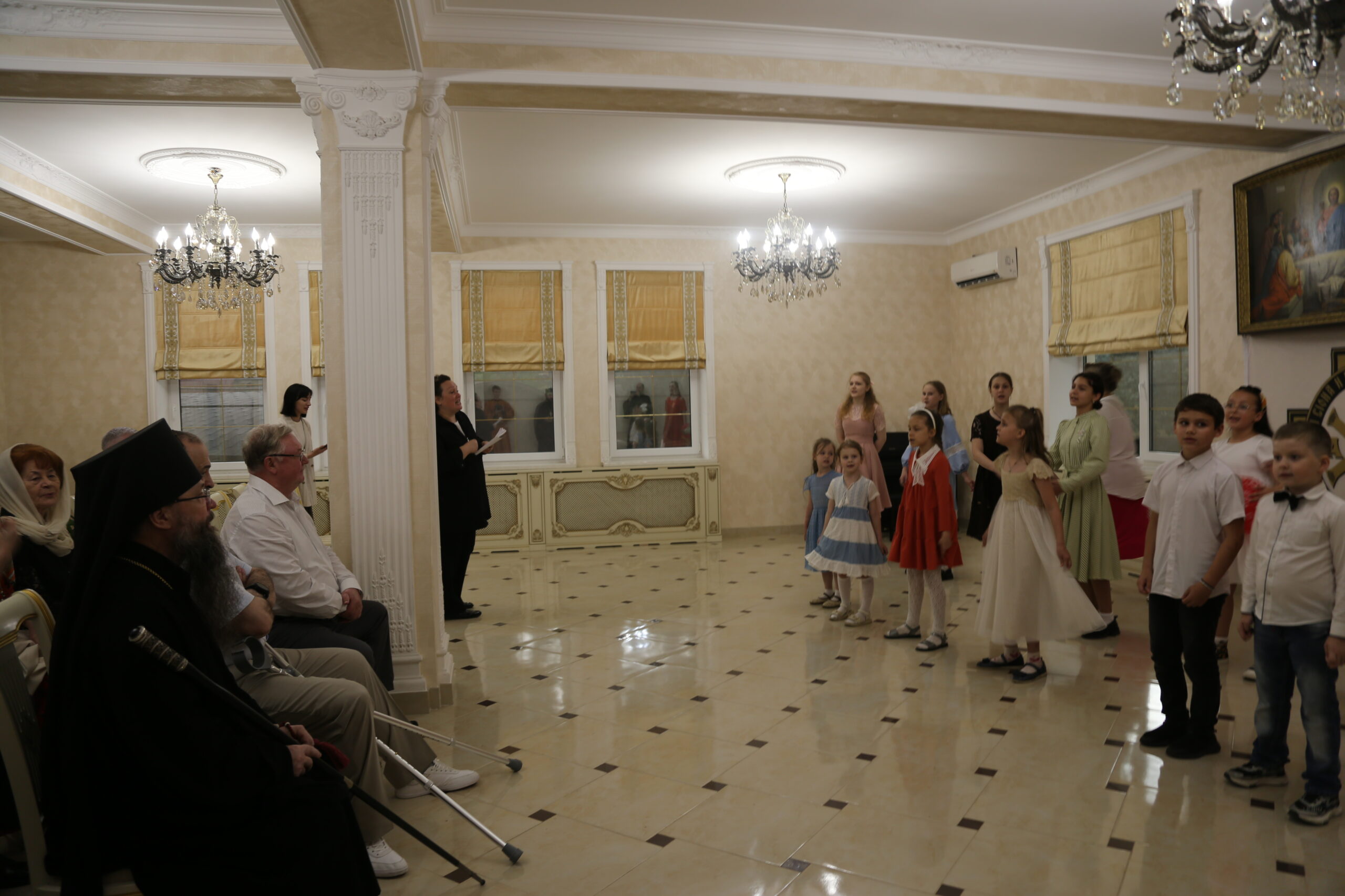 В актовом зале центра состоялся праздничный концерт с участием воспитанников воскресной школы, детского хора и хора епархиального духовенства.