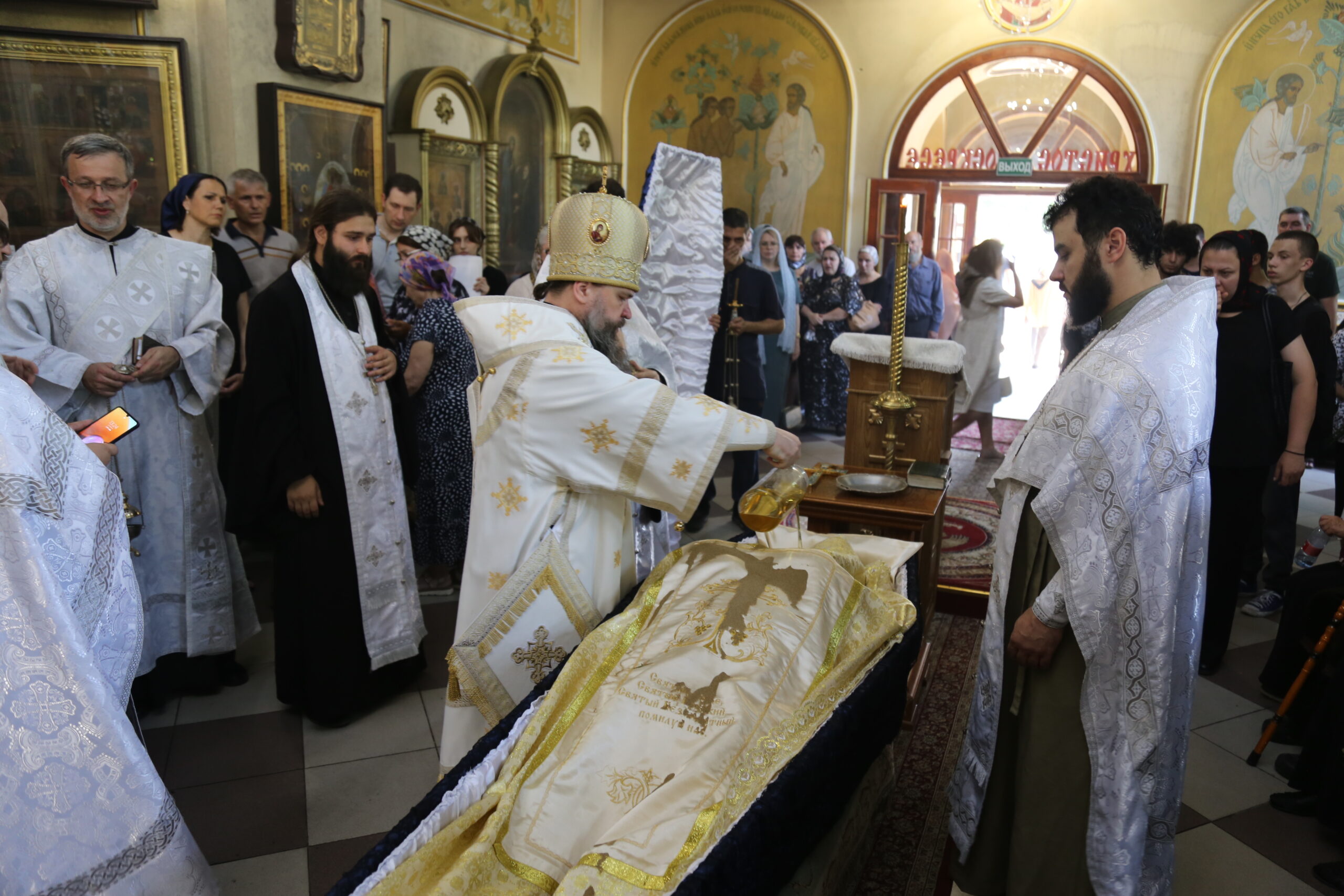 На третий день был совершен чин погребения, который возглавил архиепископ Варлаам в сослужении клириков храма.