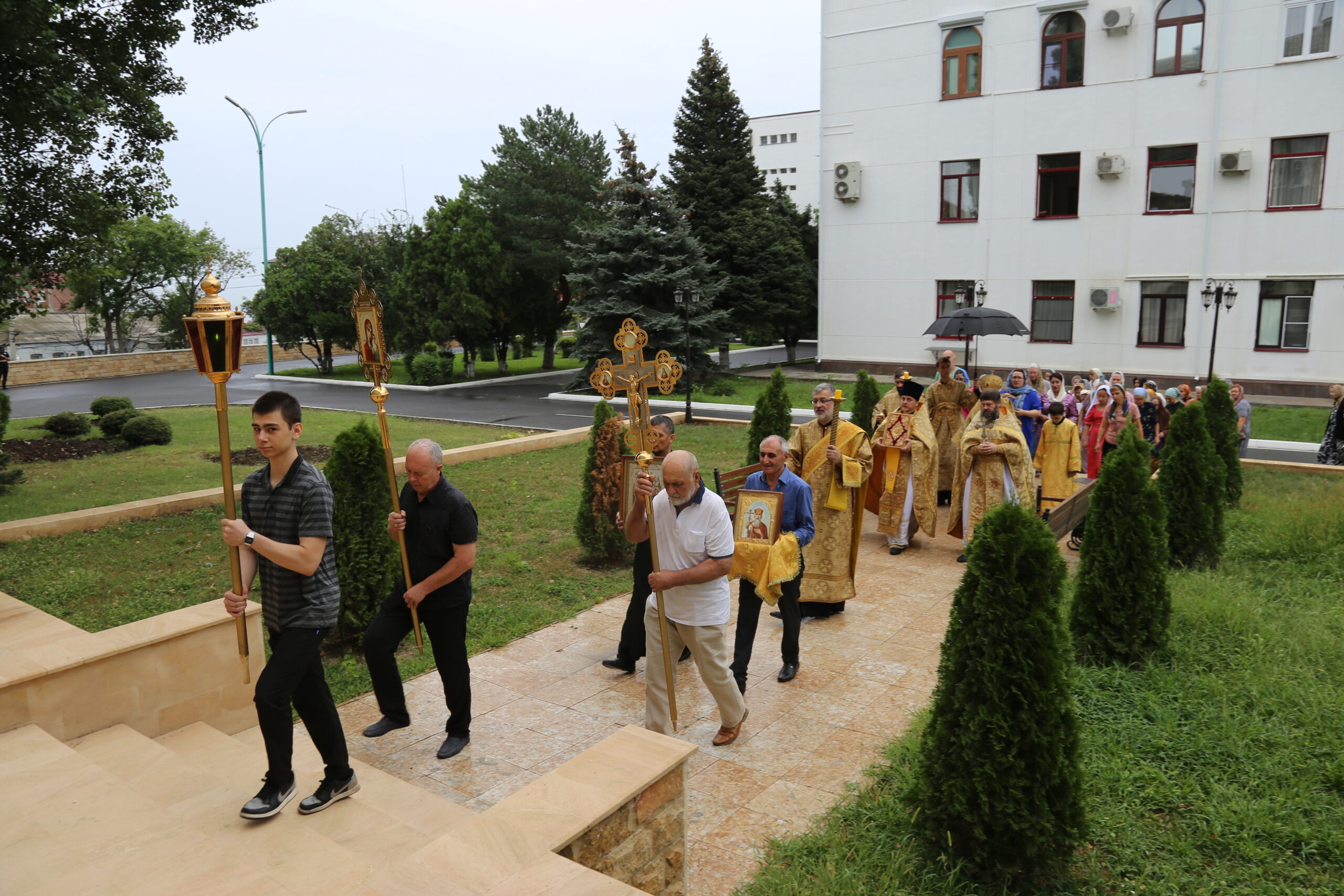 По заамвонной молитве состоялся крестный ход вокруг храма.