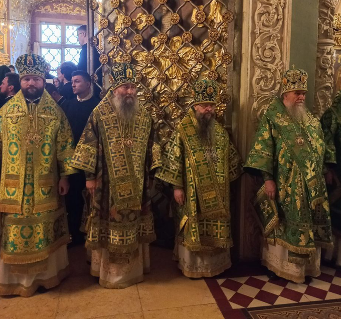Его Святейшеству сослужил сонм иерархов Русской Православной Церкви и насельники Троице-Сергиевой лавры в священном сане
