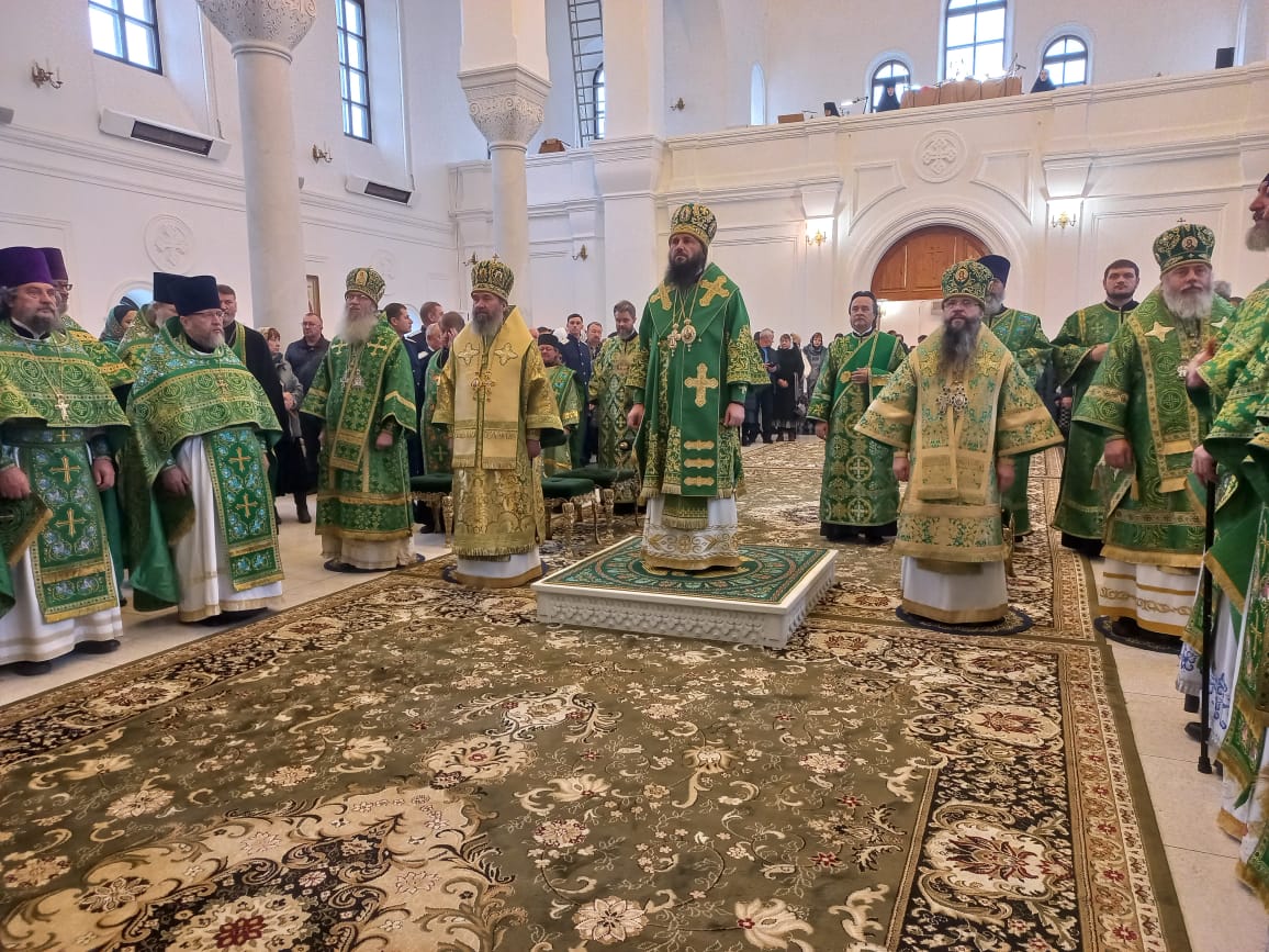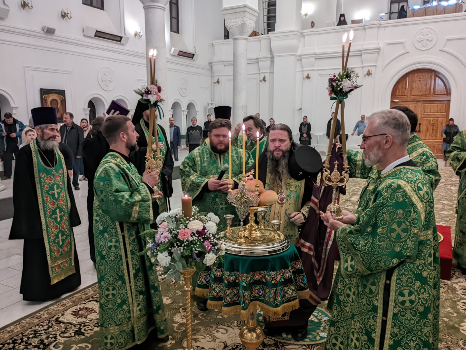Его Высокопреосвященству сослужили архиепископ Элистинский и Калмыцкий Юстиниан, архиепископ Махачкалинский и Грозненский Варлаам, епископ Урюпинский и Новоаннинский Елисей, епископ Калачёвский и Палласовский Иоанн.