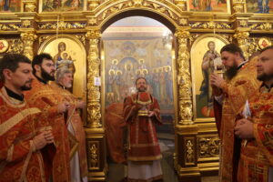 По сугубой ектении архиепископ Варлаам вознес молитву о Святой Руси, возносимую во всех храмах Русской Православной Церкви по благословению Святейшего Патриарха Московского и всея Руси Кирилла.