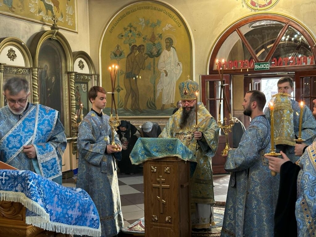 Накануне вечером епархиальный архиерей совершил в кафедральном храме утреню с чтением акафиста.