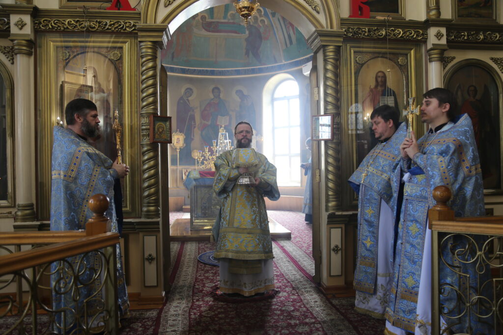 По сугубой ектении архиепископ Варлаам прочитал молитву о Святой Руси, возносимую во всех храмах Русской Православной Церкви по благословению Святейшего Патриарха Московского и всея Руси Кирилла.