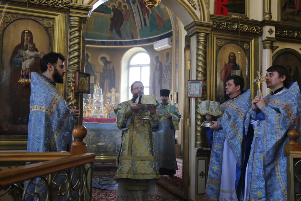 По сугубой ектении архиепископ Варлаам прочитал молитву о Святой Руси, возносимую во всех храмах Русской Православной Церкви по благословению Святейшего Патриарха Московского и всея Руси Кирилла.