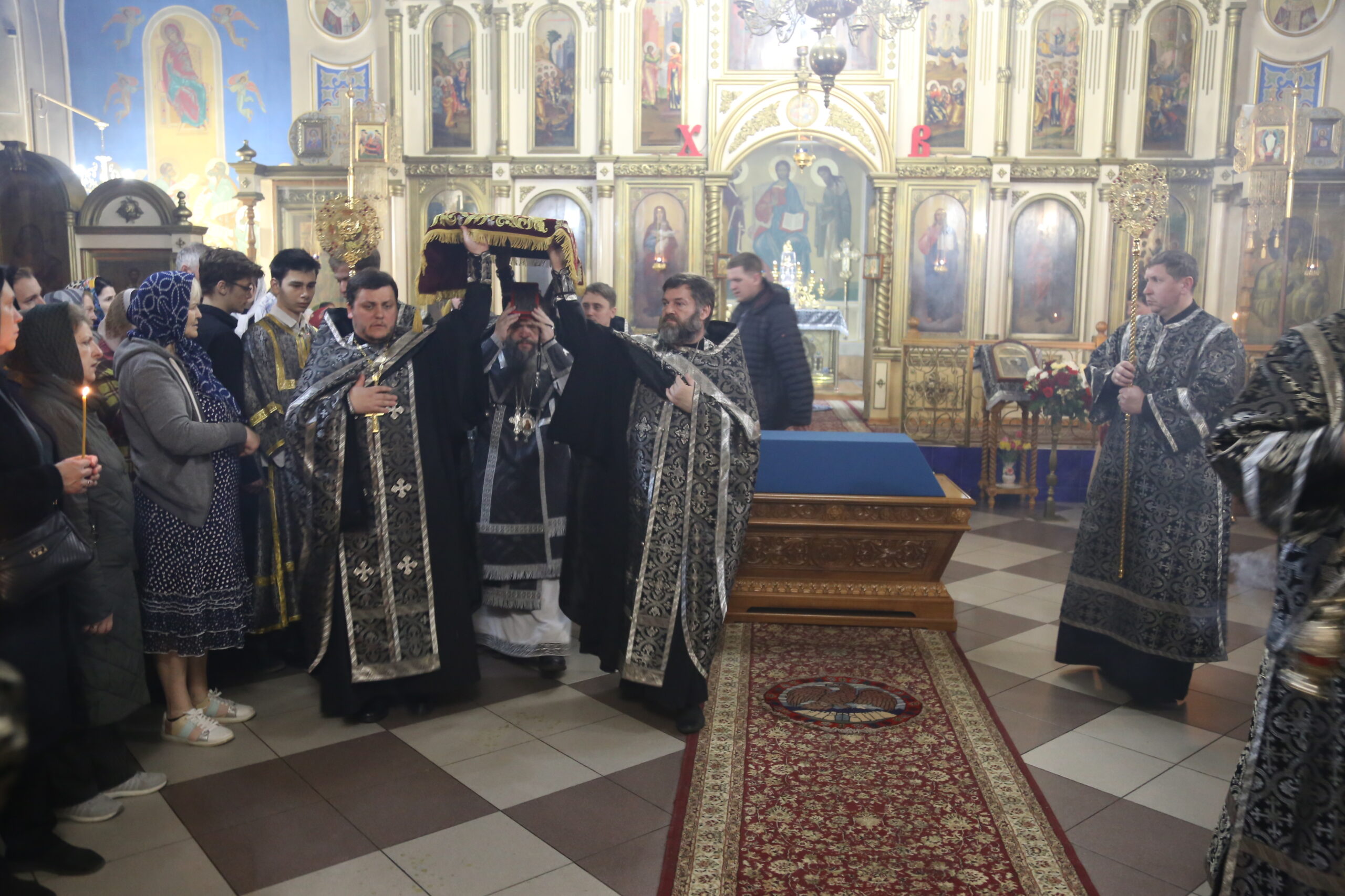 По окончании богослужения правящий архиерей еще раз поздравил присутствующих с наступающим праздником, а причастников — с принятием Святых Христовых Таин.