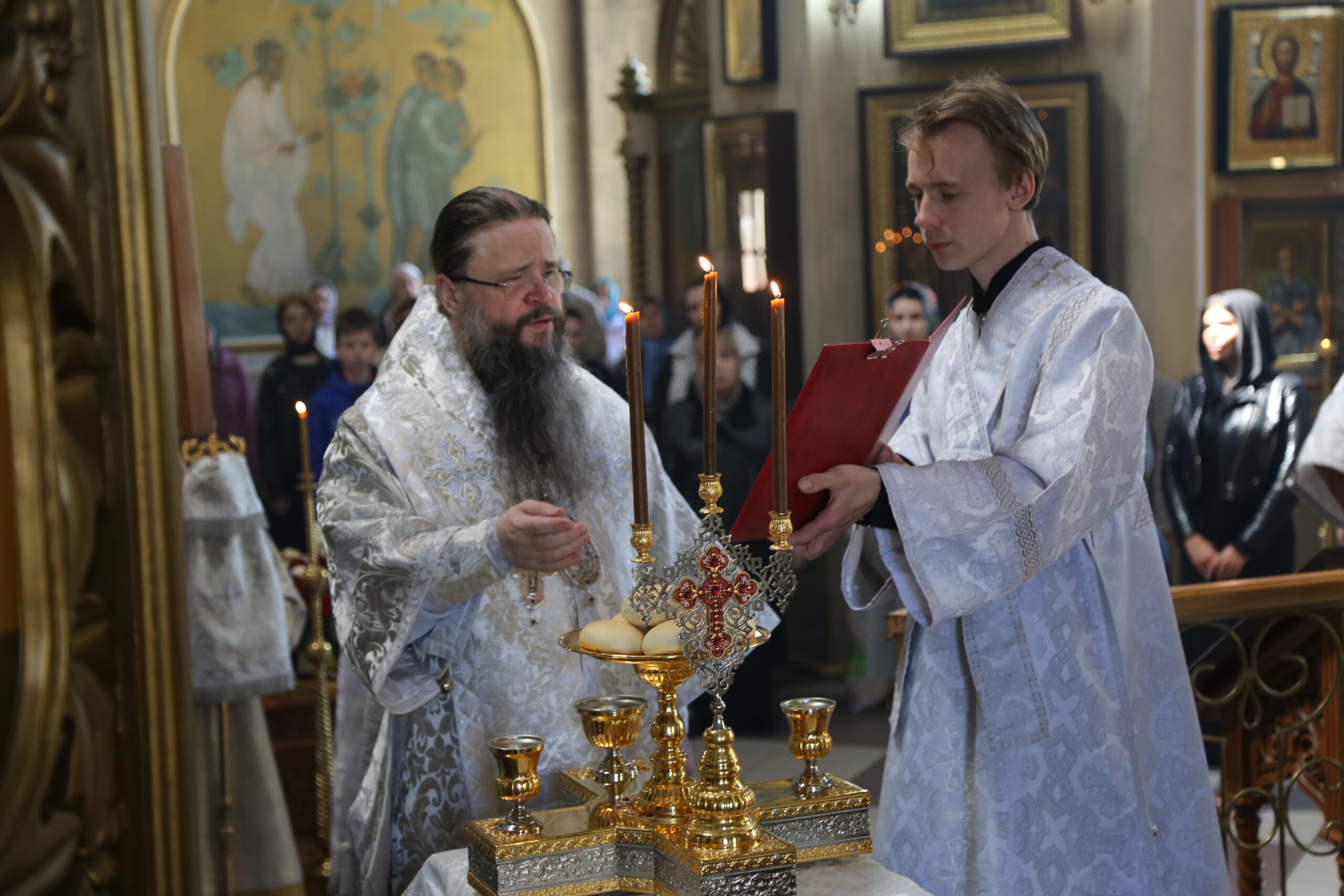 По отпусте архиепископ Варлаам совершил молитву на благословение хлебов и вина.