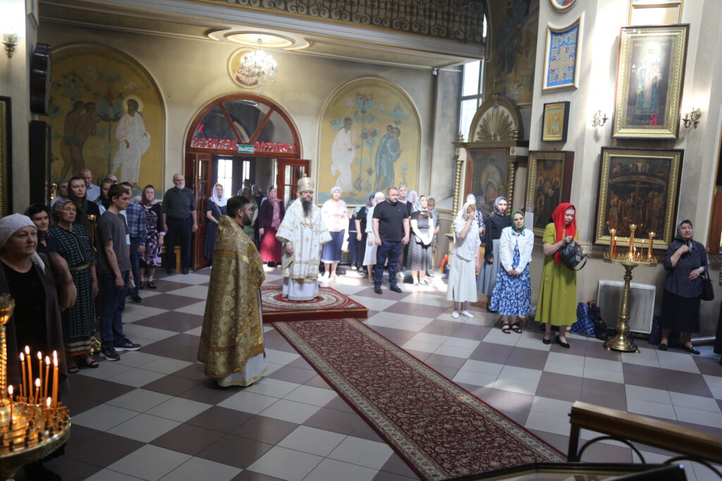 Его Высокопреосвященству сослужили клирики кафедрального собора и храма Казанской иконы Божией Матери г. Каспийска.