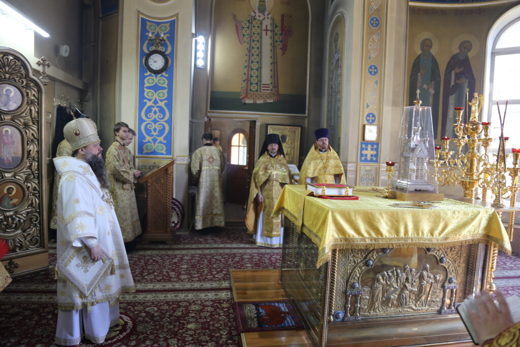 По сугубой ектении архиепископ Варлаам прочитал молитву о Святой Руси, возносимую во всех храмах Русской Православной Церкви по благословению Святейшего Патриарха Московского и всея Руси Кирилла.