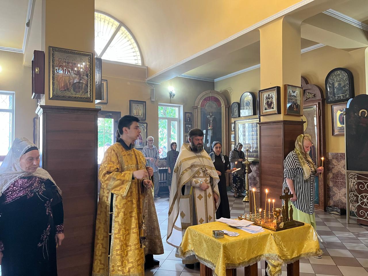 Были вознесены молитвы о упокоении душ приснопоминаемых протоиерея Николая и раба Божия Михаила, убитых год назад участниками террористических атак на храмы Дербента и Махачкалы.