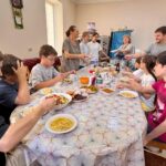 Совместные труды завершились трапезой, которую подготовили сотрудники епархиального управления, и беседой о важности заботы о родном храме.
