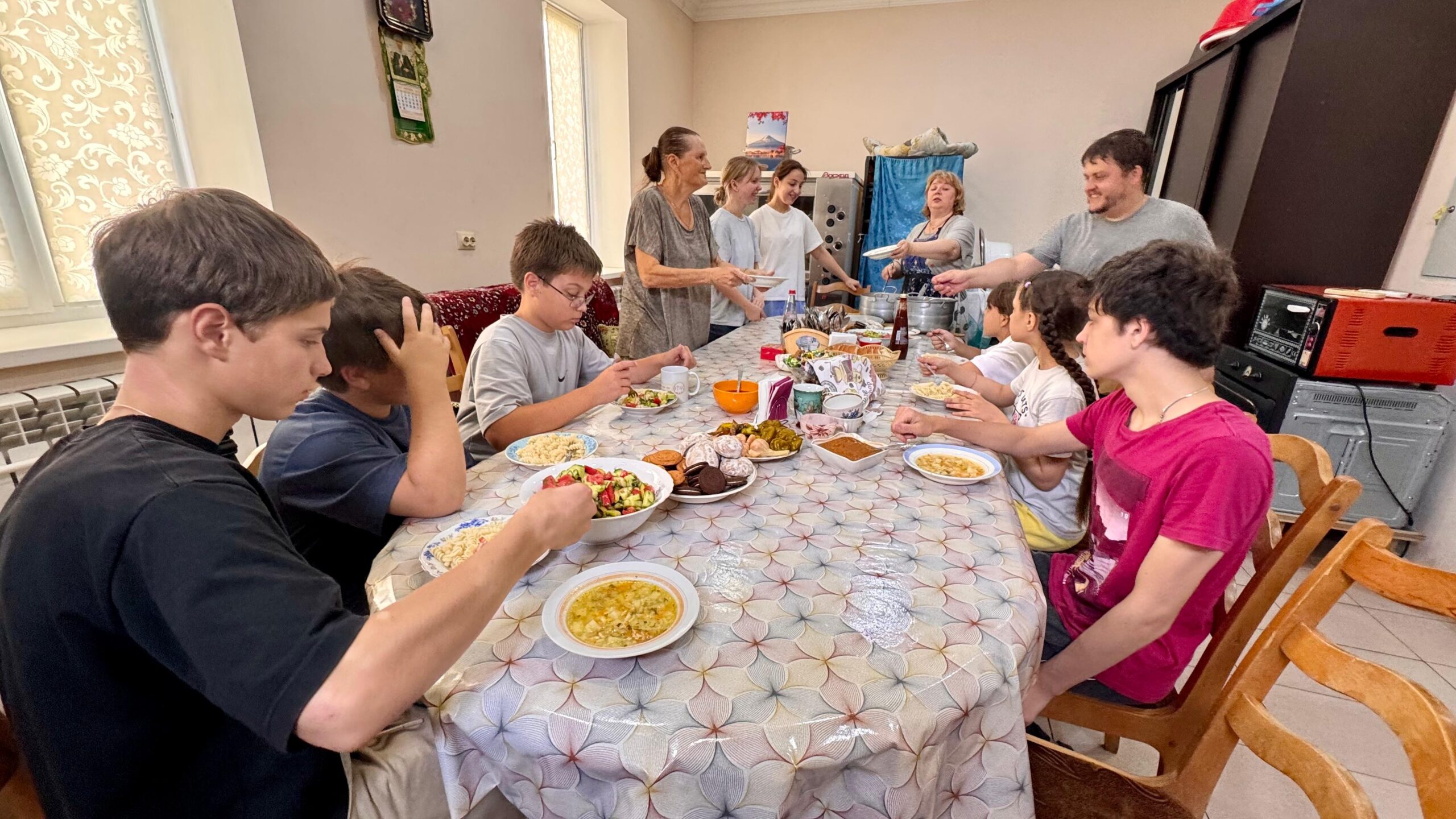 Совместные труды завершились трапезой, которую подготовили сотрудники епархиального управления, и беседой о важности заботы о родном храме.