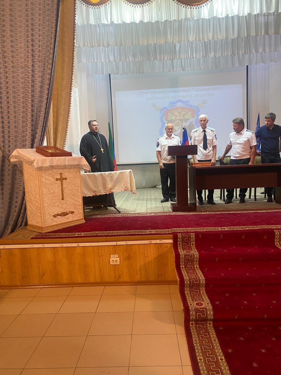 23 августа 2025 года в актовом зале Дома культуры с. Тарумовка Тарумовского района прошел отчетно-выборный круг Тарумовского районного казачьего общества.