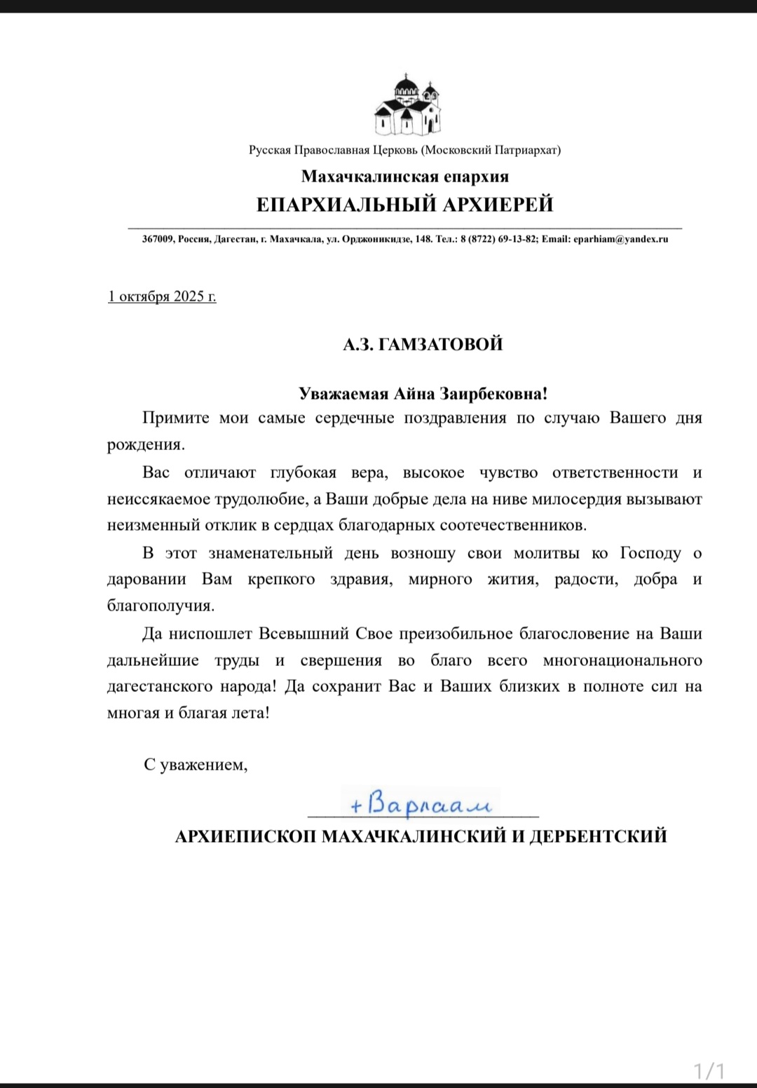 - Поздравление Главы Дагестана архиепископу Варлааму с днем рождения
