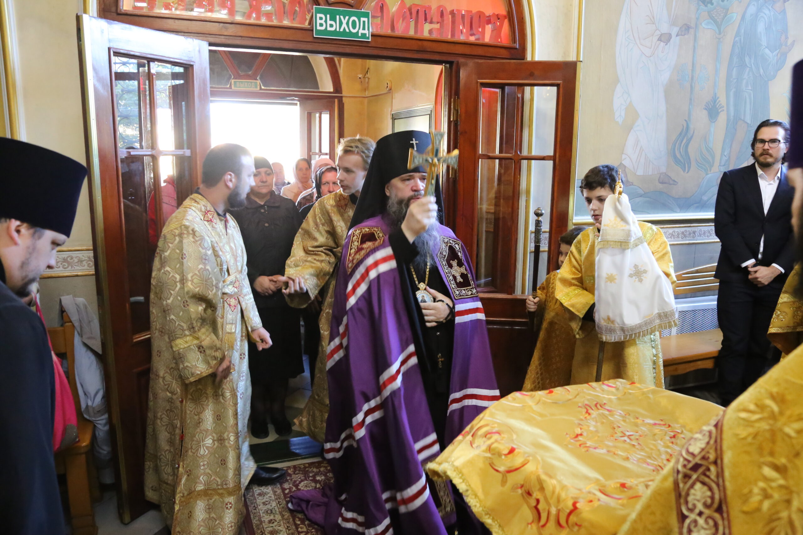 По сугубой ектении правящий архиерей прочитал молитву о Святой Руси, возносимую во всех храмах Русской Православной Церкви по благословению Святейшего Патриарха Московского и всея Руси Кирилла.