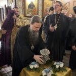 На праздник в храм был доставлен ковчег с частицей мощей святого апостола Андрея Первозванного.