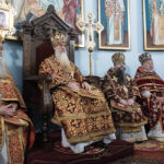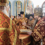 За Литургией архипастырям сослужили клирики Тихорецкой и Екатеринодарской епархий, приехавшие поздравить правящего архиерея Тихорецкой епархии с днем тезоименитства.