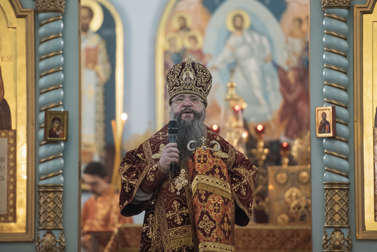 После чтения на Литургии Евангелия архиепископ Варлаам обратился к присутствующим с проповедью.