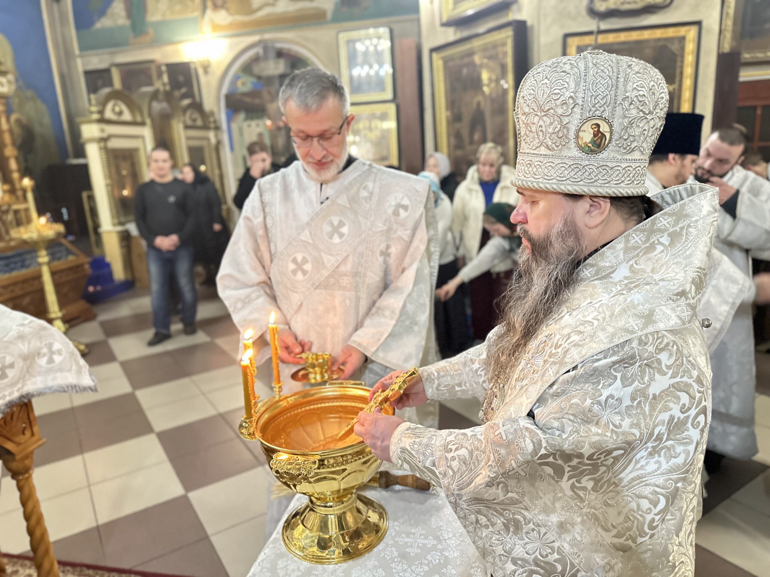 По сугубой ектении правящий архиерей прочитал молитву о Святой Руси, возносимую во всех храмах Русской Православной Церкви по благословению Святейшего Патриарха Московского и всея Руси Кирилла.