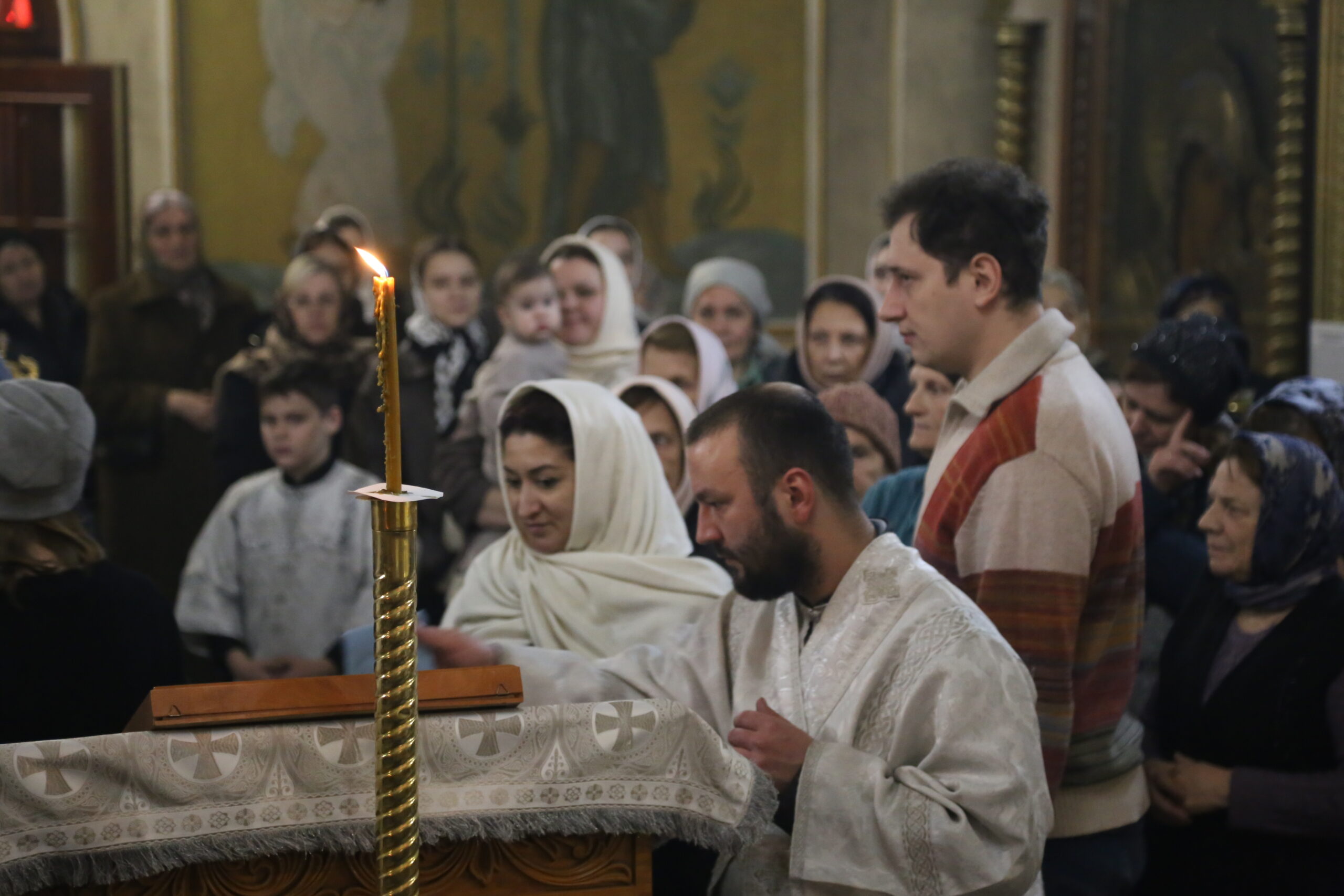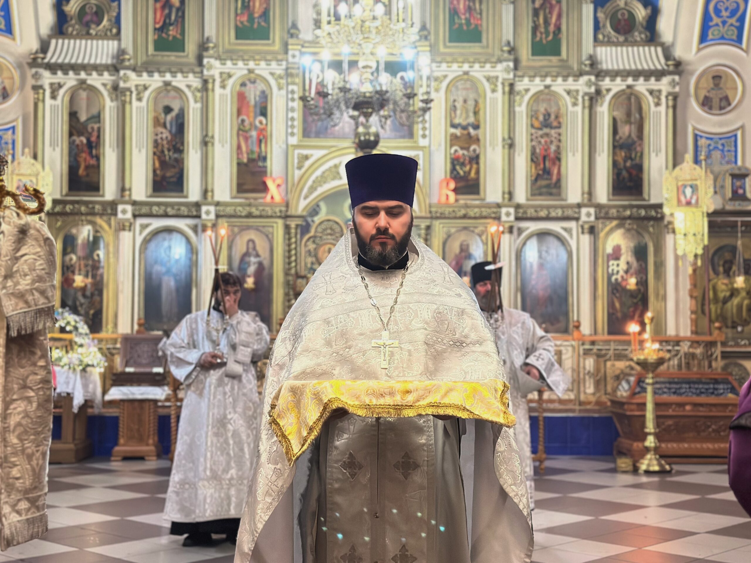 Проповедь по запричастном стихе произнес клирик кафедрального собора иерей Сергий Абасов.
