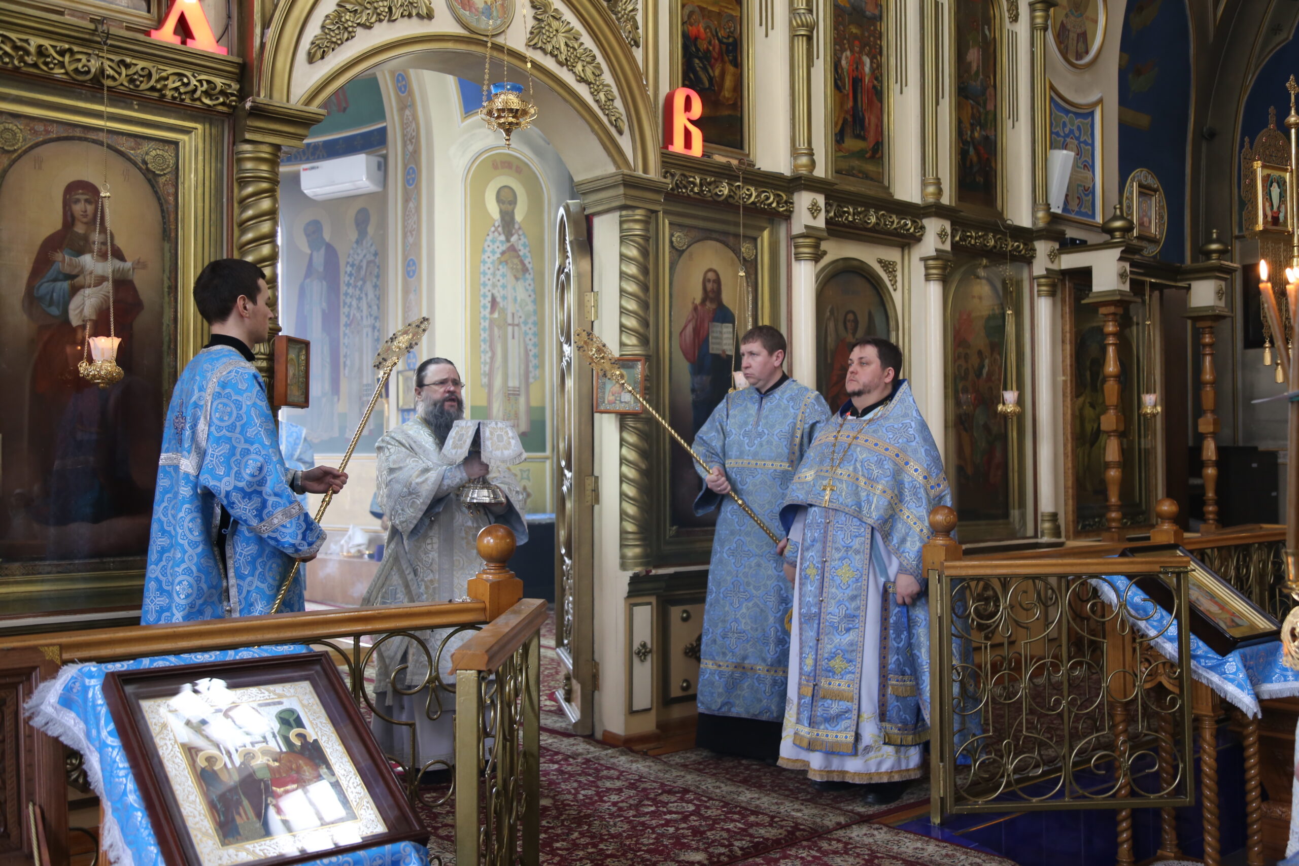 По сугубой ектении правящий архиерей прочитал молитву о Святой Руси, возносимую во всех храмах Русской Православной Церкви по благословению Святейшего Патриарха Московского и всея Руси Кирилла.