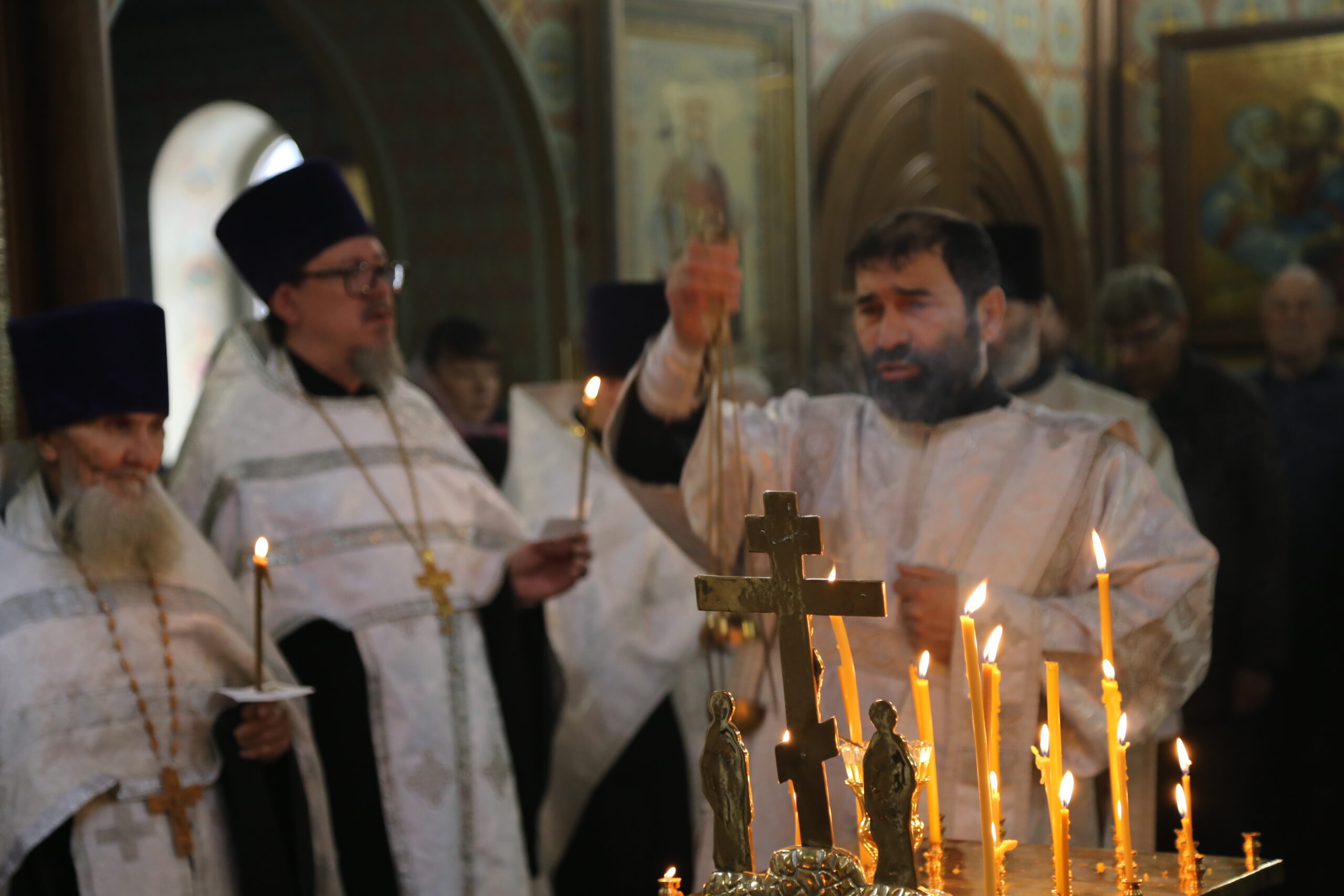 За панихидой Его Высокопреосвященству сослужили секретарь епархии, благочинный Кизлярского церковного округа, настоятель Свято-Георгиевского собора иерей Павел Каликин и клирики Махачкалинской епархии.