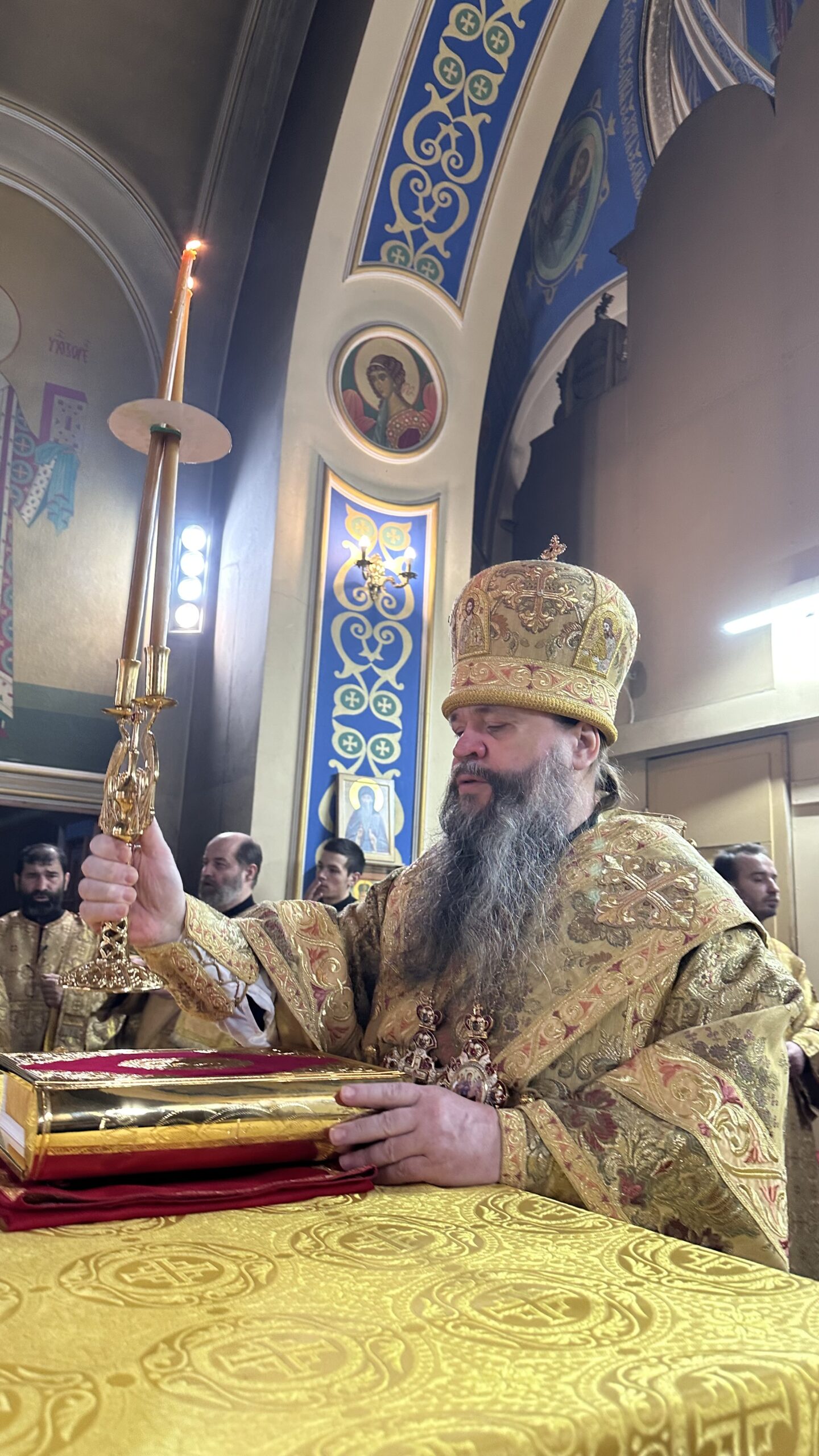 После чтения Евангелия иерарх поздравил присутствующих с наступающим Великим постом и обратился к духовенству и мирянам с архипастырским словом.