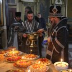 По заамвонной молитве правящий архиерей возглавил молебное пение святому великомученику Феодору Тирону и освятил коливо.