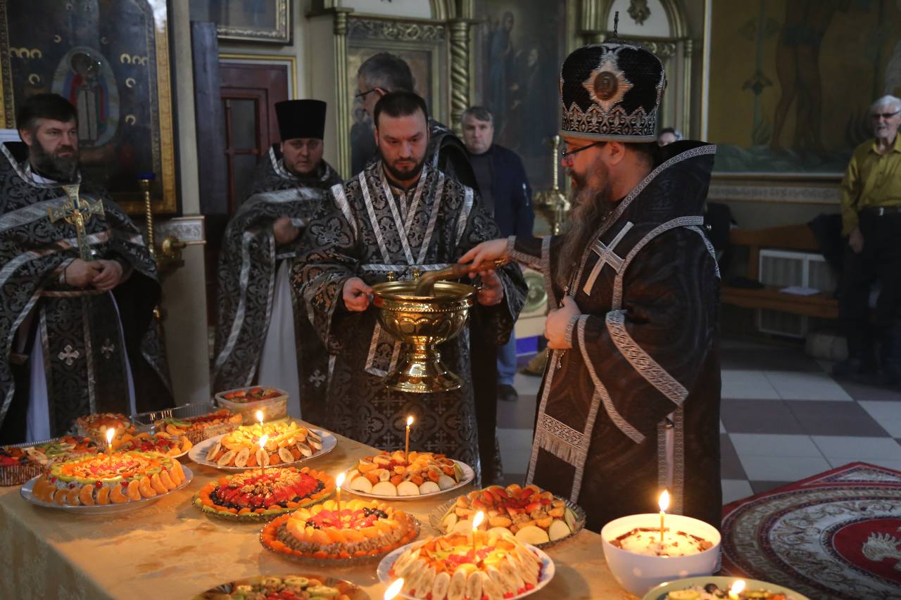 По заамвонной молитве правящий архиерей возглавил молебное пение святому великомученику Феодору Тирону и освятил коливо.
