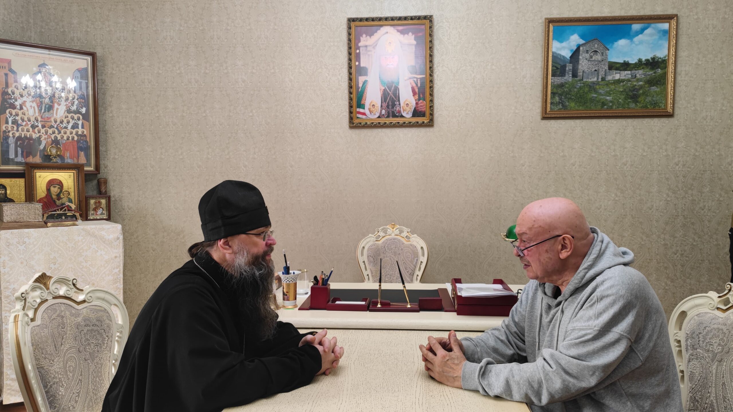 3 марта 2026 года в Махачкалинском епархиальном управлении состоялась встреча архиепископа Махачкалинского и Дербентского Варлаама с заслуженным художником Российской Федерации, академиком Российской академии художеств Абдулзагиром Бозгитовичем Мусаевым.