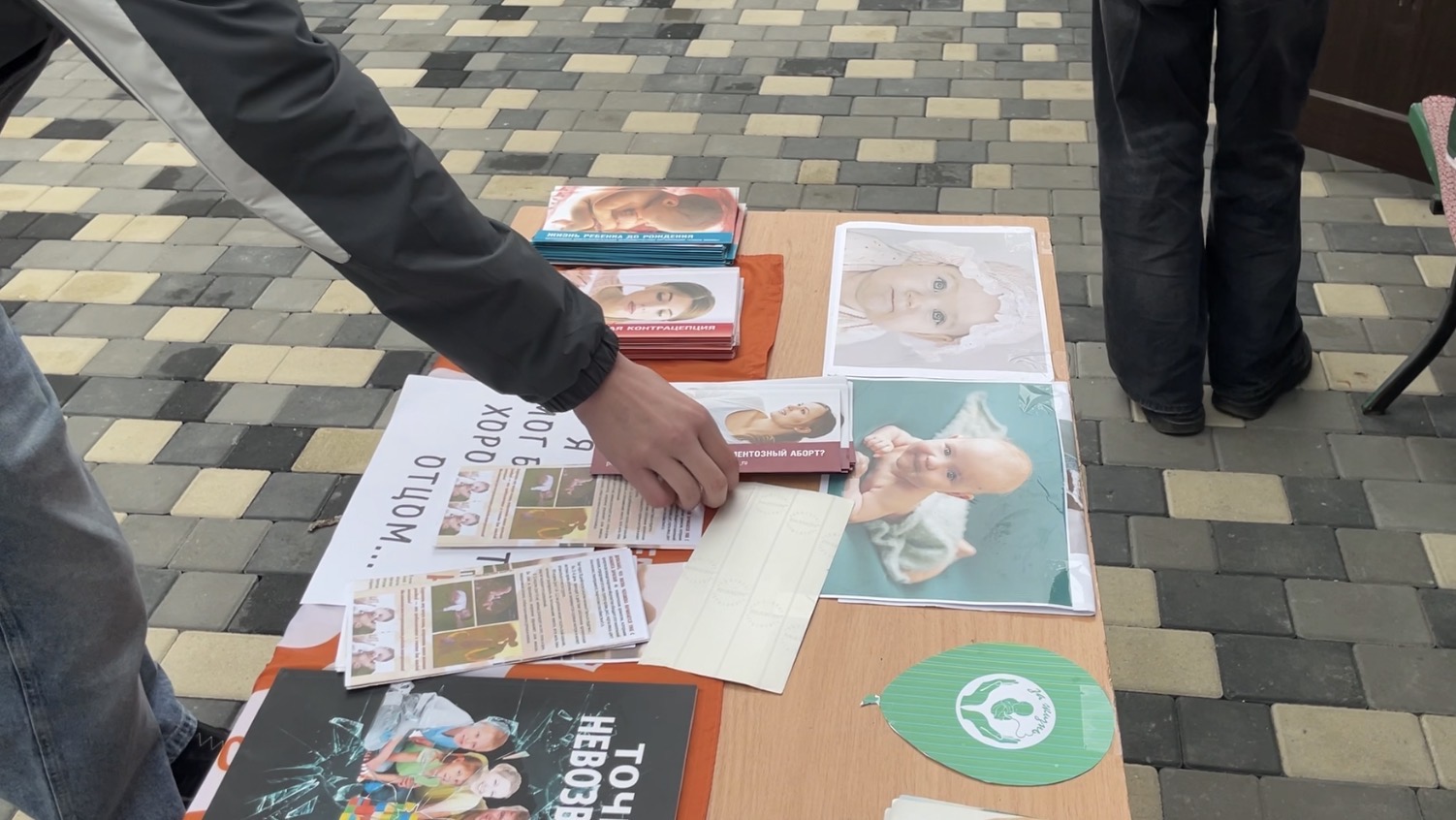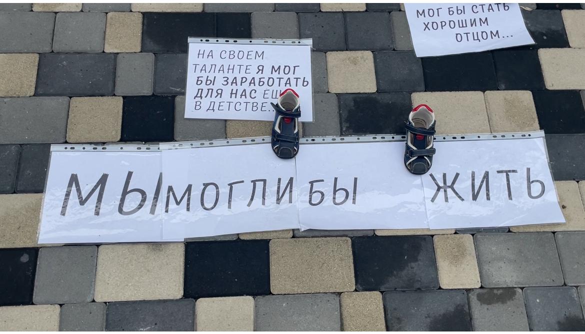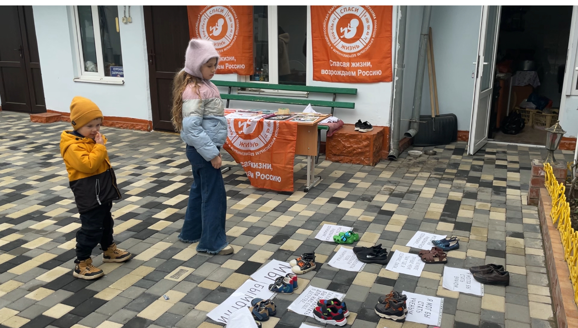 Во дворе Покровского храма ребята подготовили небольшую экспозицию с надписями-обращениями от имени нерожденных детей — о том, кем они могли бы стать, если бы пришли в этот мир.
