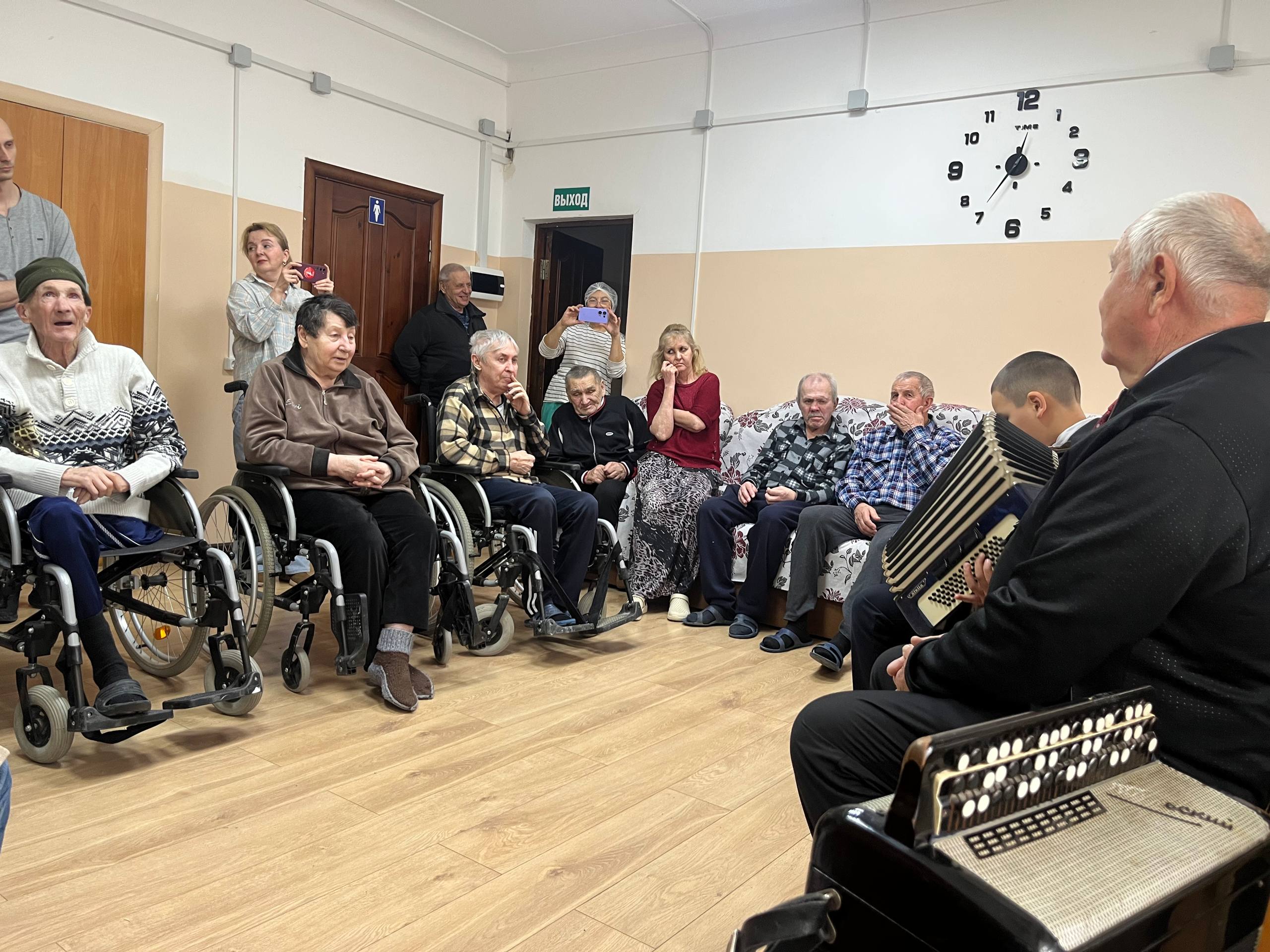 Для пребывающих в отделении временного пребывания была организована небольшая концертная программа, а также чаепитие со сладостями. Пожилым женщинам и сотрудницам отделения были подарены цветы.