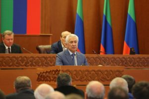 «Как вы знаете, 3 октября 2017 года в связи с заявлением Главы Республики Дагестан Рамазана Гаджимурадовича Абдулатипова о досрочном прекращении полномочий и в соответствии с подпунктом «в» пункта 1 и подпунктом «а» пункта 9 статьи 19 Федерального закона от 6 октября 1999 г. № 184‑ФЗ «Об общих принципах организации законодательных (представительных) и исполнительных органов государственной власти субъектов Российской Федерации» Президент России Владимир Владимирович Путин принял отставку Главы Республики Дагестан по собственному желанию», — напомнил полпред, после чего поблагодарил Рамазана Абдулатипова за проделанную работу и предоставил ему слово.