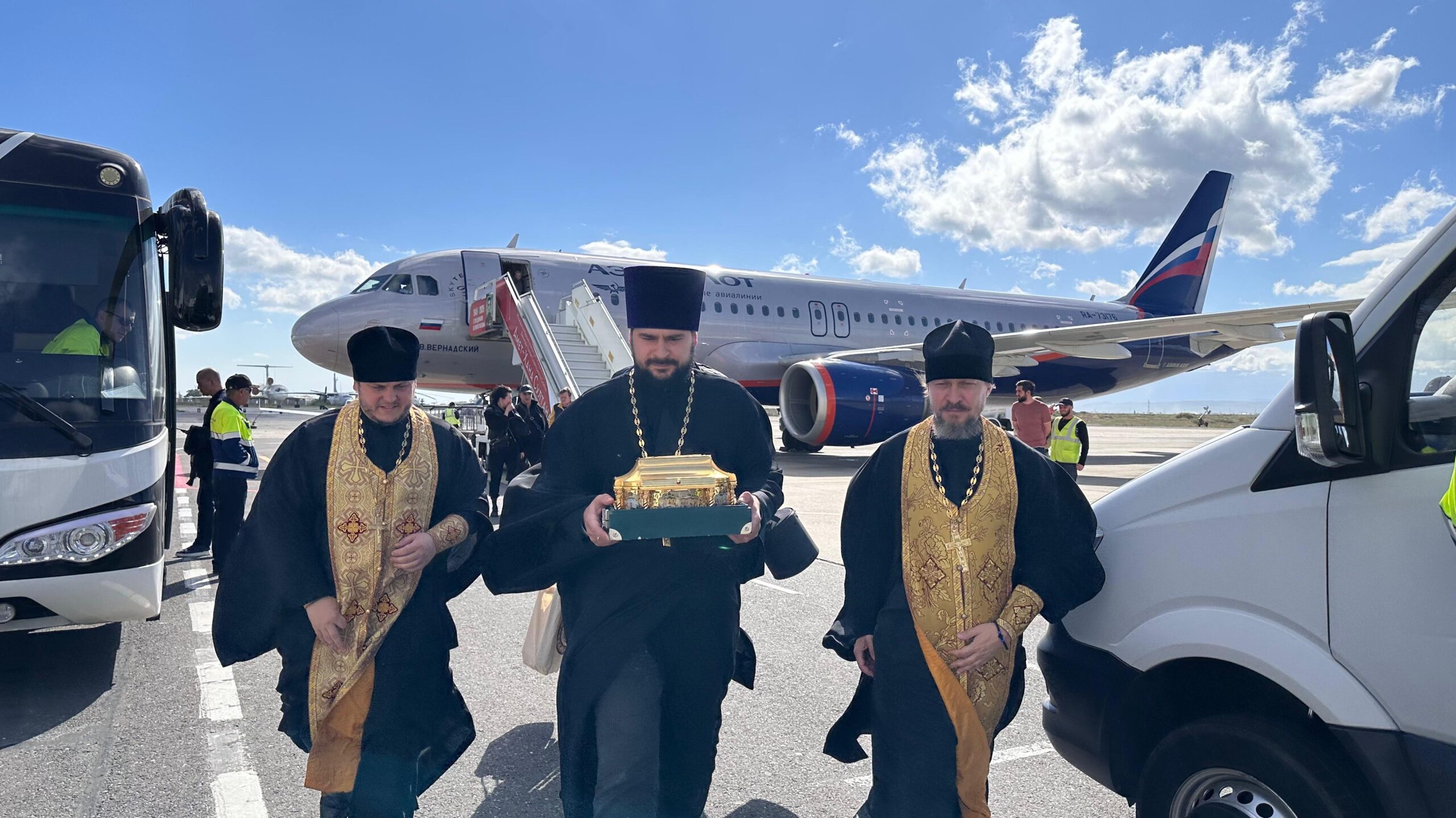 В аэропорту Махачкалы встретили ковчег с частицей мощей святителя Тихона, Патриарха Московского и всея России