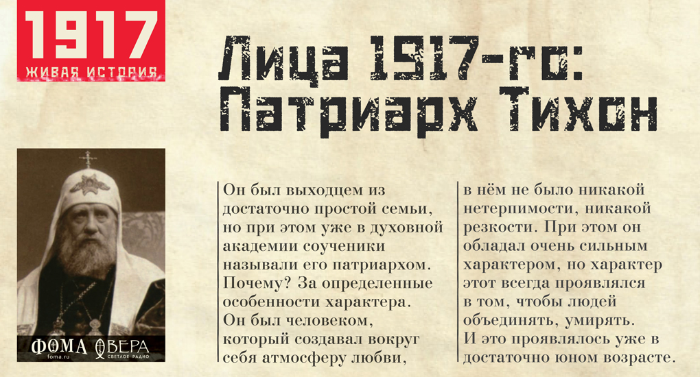 14 фактов о жизни и борьбе патриарха Тихона К 100-летию со дня избрания на патриарший престол 18 ноября исполнится 100 лет со дня избрания на Патриарший престол святителя Тихона. Тогда, в 1917 году, ...