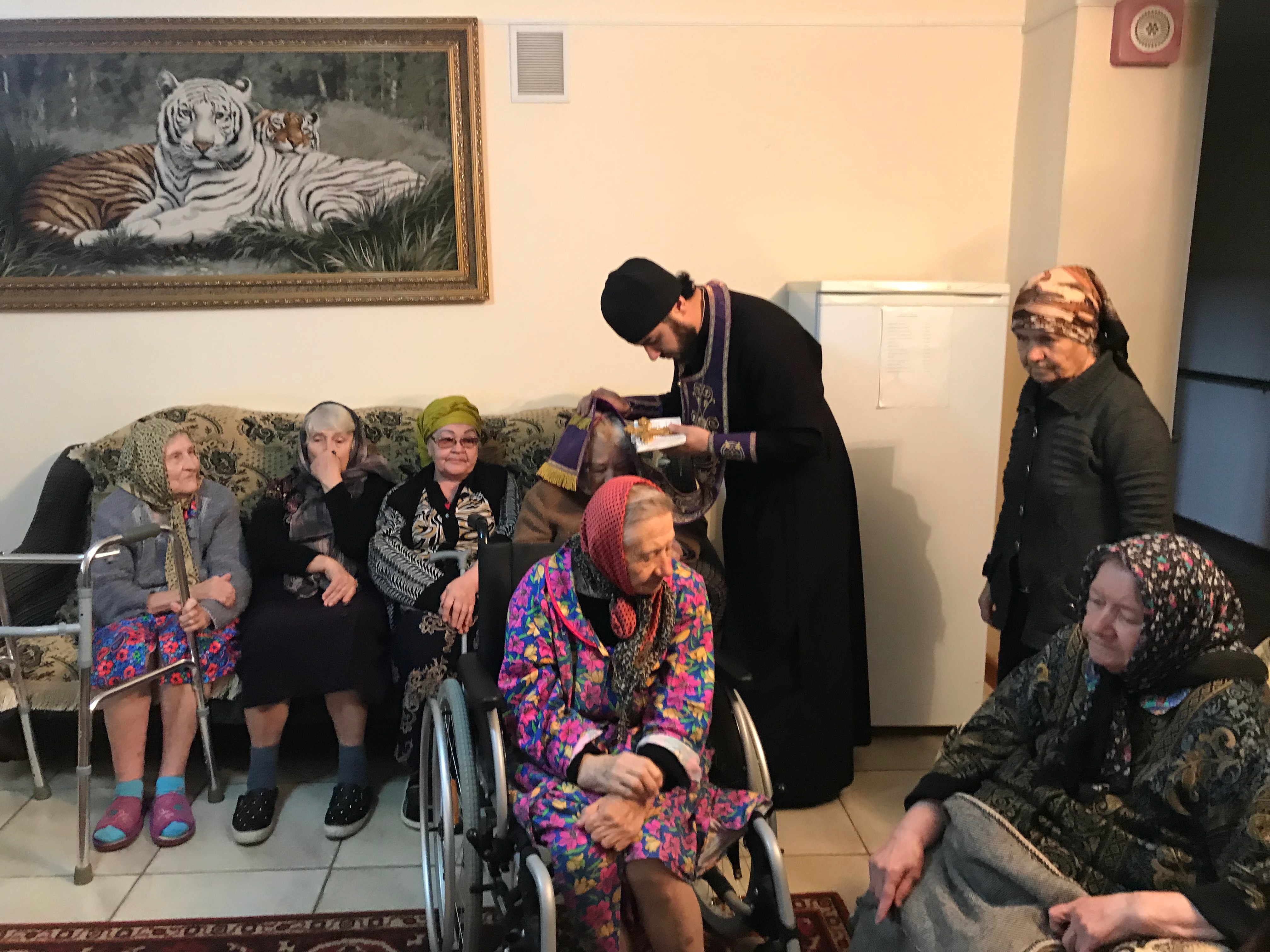 Священник и сестры милосердия посетили в Пасхальные дни дом-интернат «Ветеран»