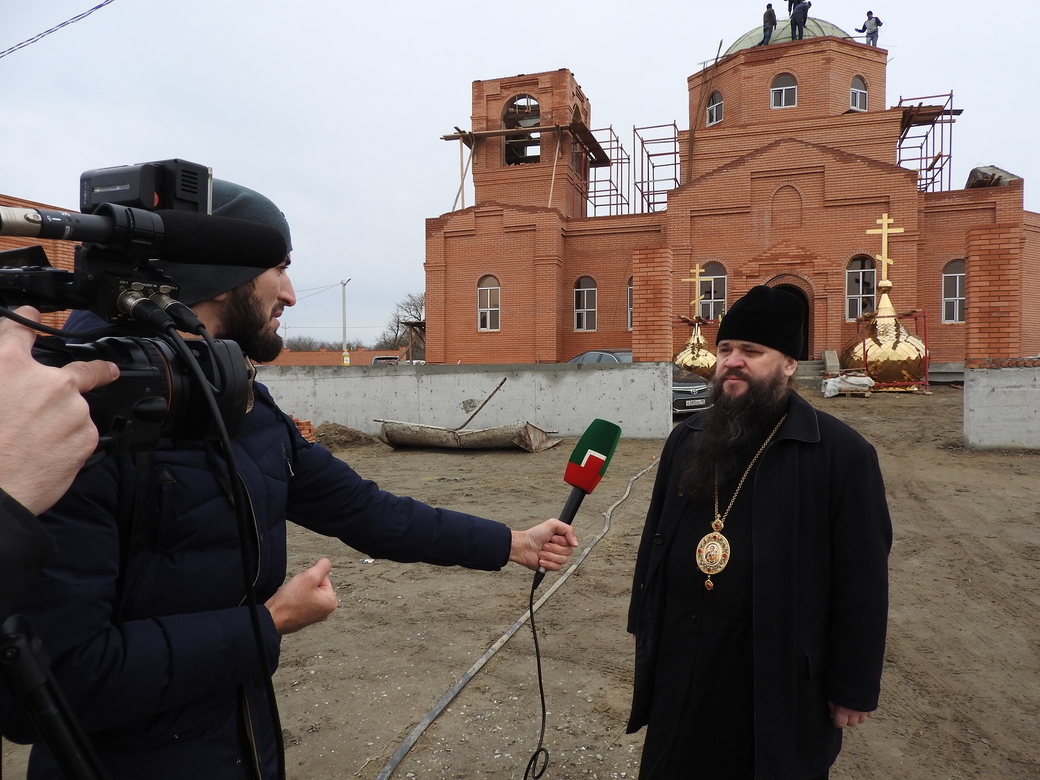 В торжественной обстановке архиепископ Варлаам освятил накупольные кресты и колокола для нового храма в станице Шелковской