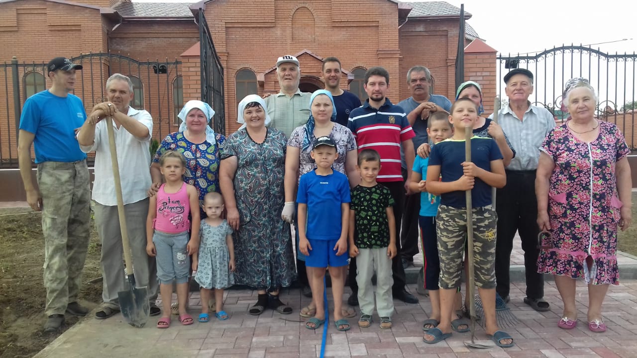 В станице Шелковская прихожане организовали субботник на территории строящегося храма